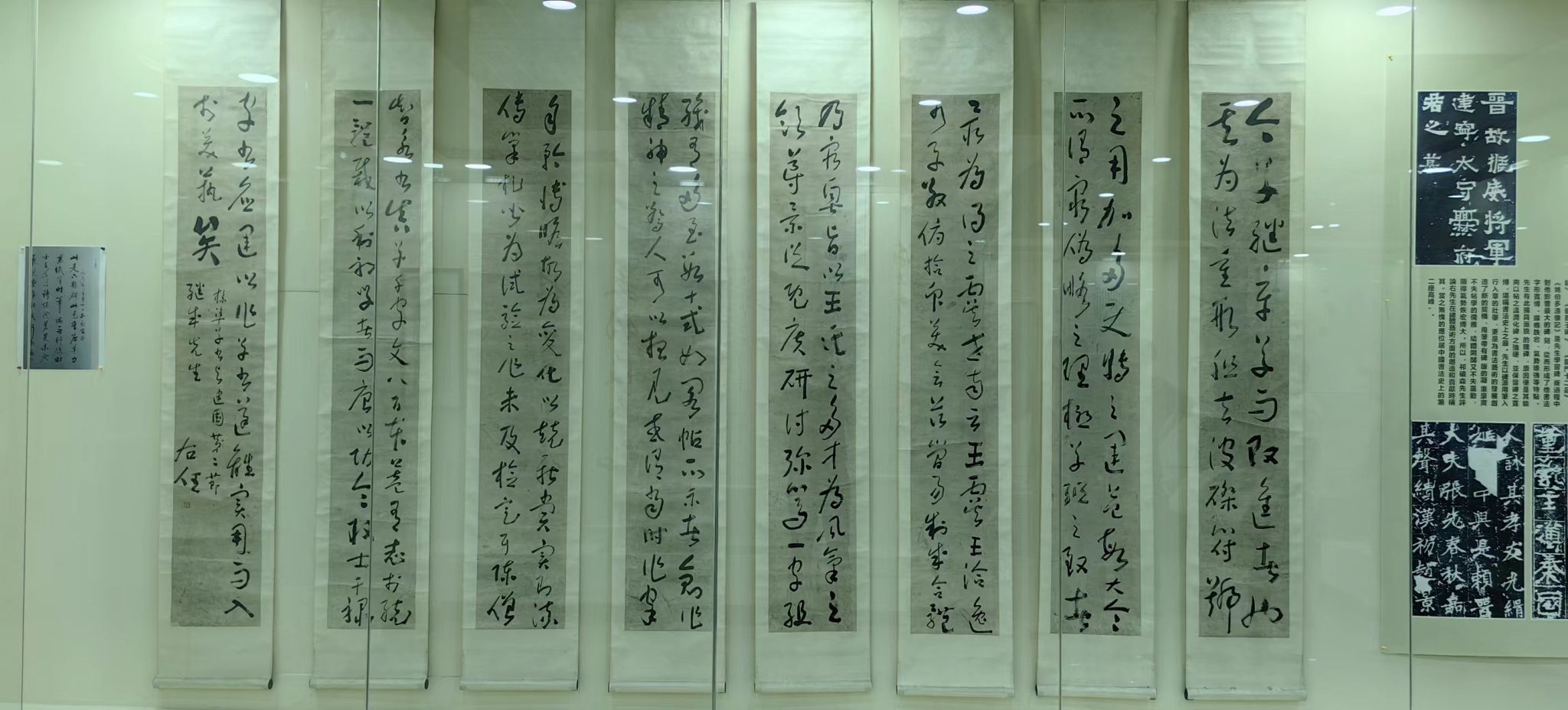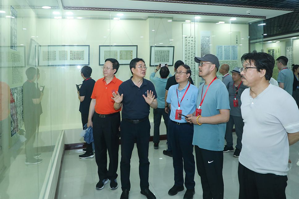与会专家还参观了公司于右任书法艺术馆。365上市集团官网经理王智杰向专家们详细介绍了于右任书法艺术馆的馆藏情况。在咸阳市文保中心王主任、旬邑县博物馆张馆长的大力支持下,于右任书法艺术馆还特别展出了此前从未正式展览的于右任早期作品《标准草书与建国》八条屏,使本次考察研讨活动充满了更加浓厚的学术氛围。
