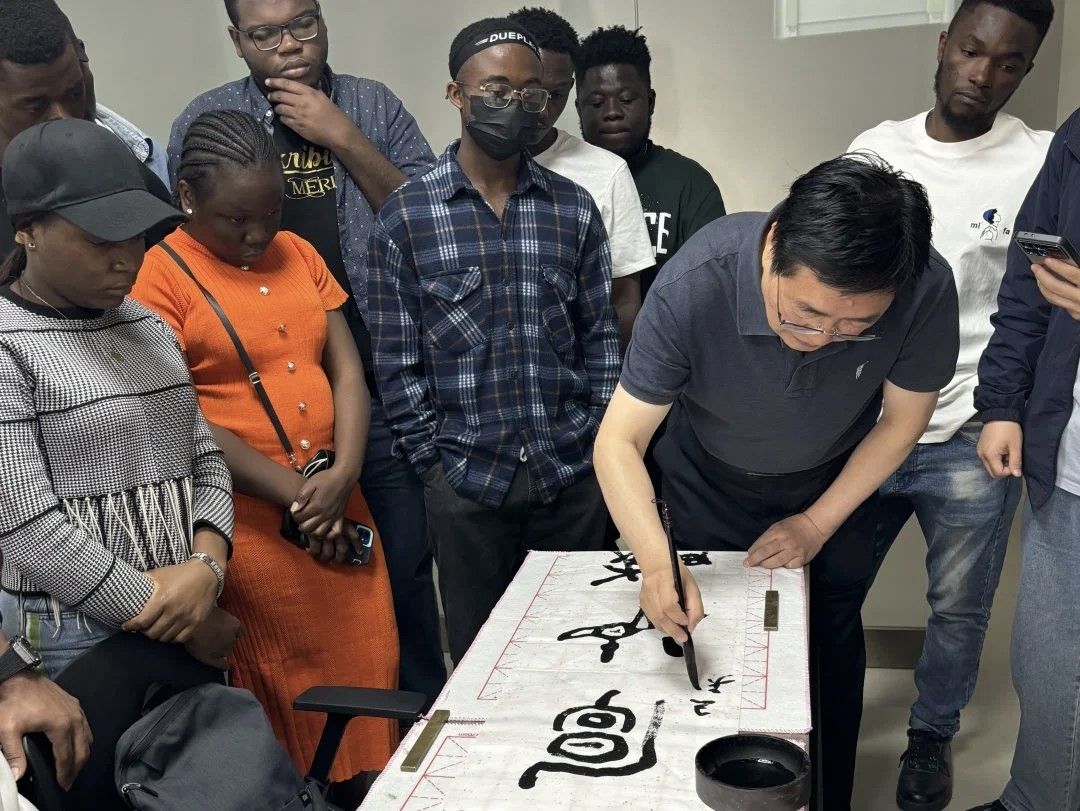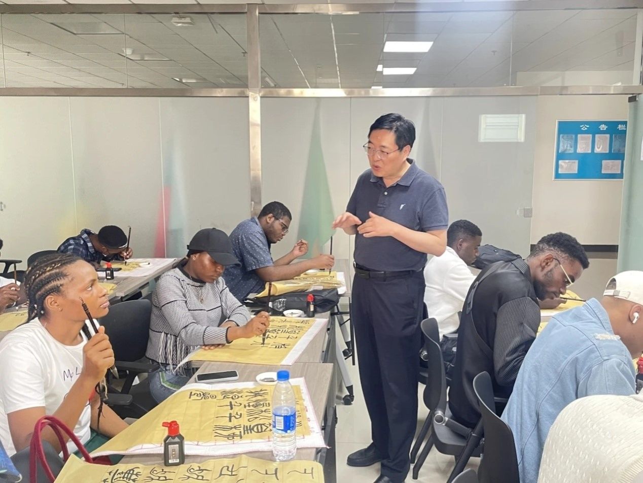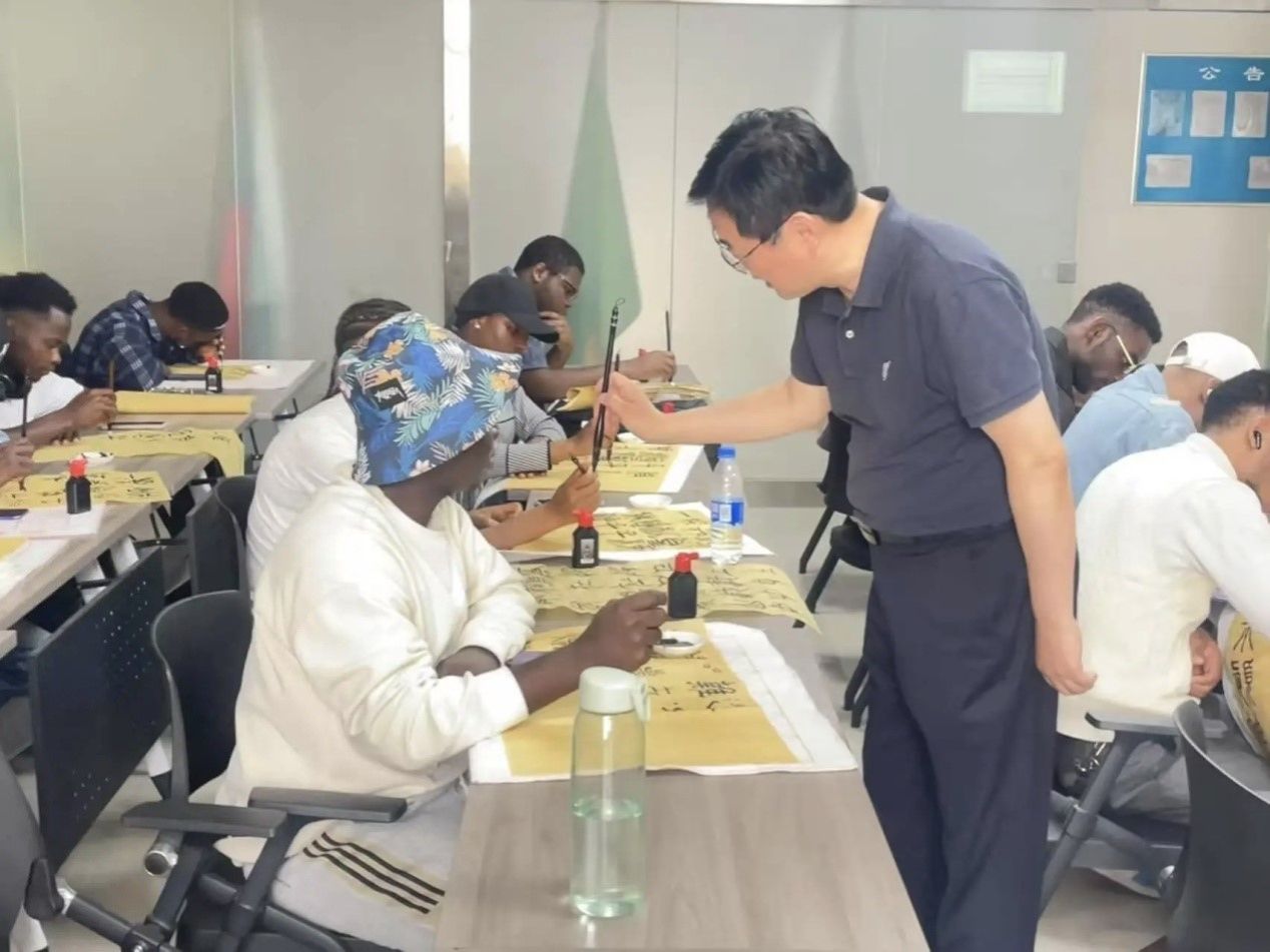 随后,员工们在王智杰教授的指导下,一笔一划间,古老书法的精妙在异国学子笔下缓缓流淌,从横竖撇捺中感受汉字的神韵,在墨香里体验中华传统文化的深厚底蕴。员工们纷纷表示要继续学习中国书法,写好汉字,领悟中国书法所蕴涵的文字艺术之美和修身养性之道,并积极准备书法展。