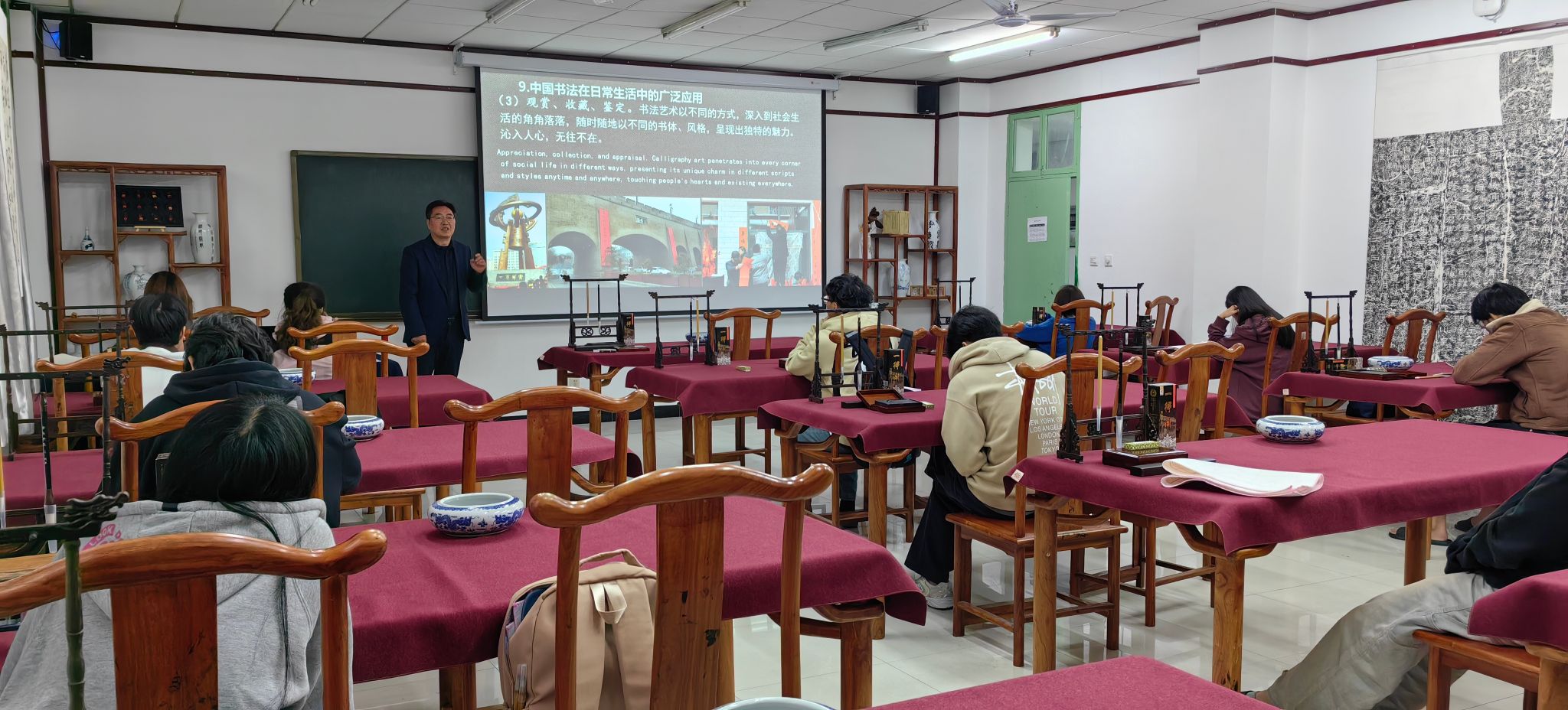 王智杰教授分别从什么是中国书法、中国书法何以能够成为独立观赏的艺术、中国书法所需要的工具与材料——文房四宝、中国书法的五种书体、中国书法的审美观念、中国书法的文化精神与当代价值、中国历代代表性艺术家及经典书法作品、中国书法的学习方法与途径、中国书法在日常生活中的广泛应用、中国书法在国际上的传播与影响力等十个问题入手,介绍了中国书法的相关基础知识,帮助同学们初步认识中国书法艺术之美和文化内涵。
