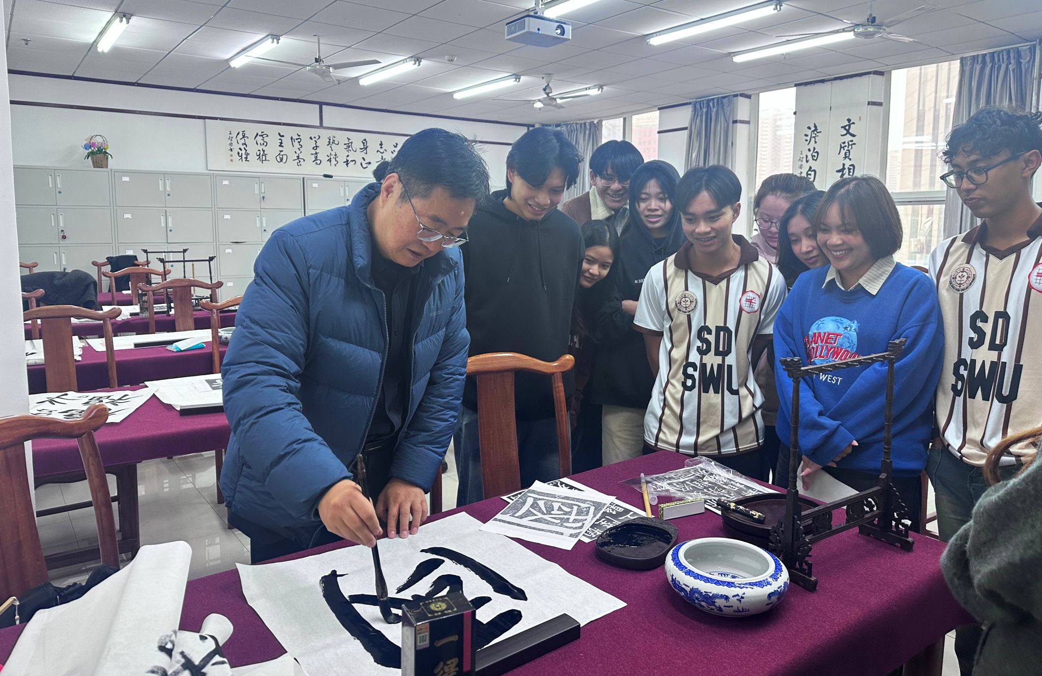 本次诗纳卡琳威洛大学“探索中国社会,体验秦风唐韵”游学项目之中国书法艺术实践活动的开展,让泰国同学初步感受到中国书法艺术的独特魅力,认识和了解到中国文化的博大精深,增进了两校的友谊。
