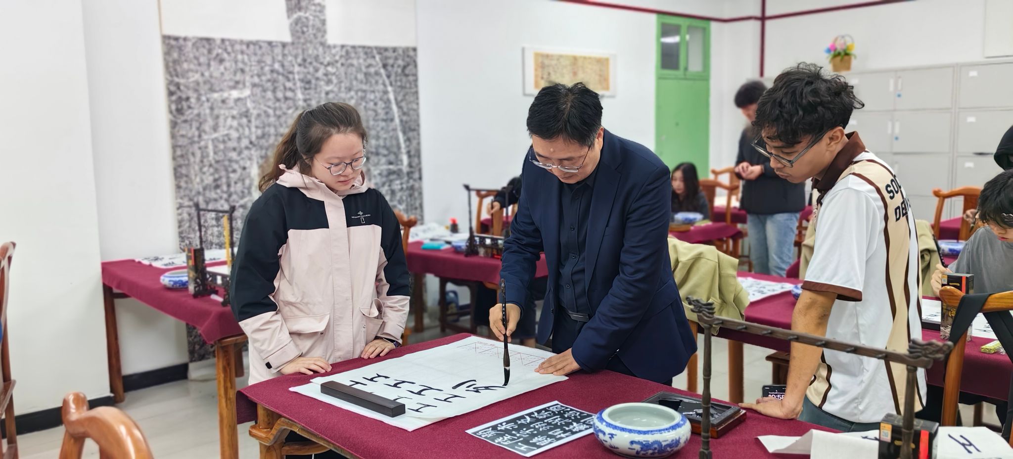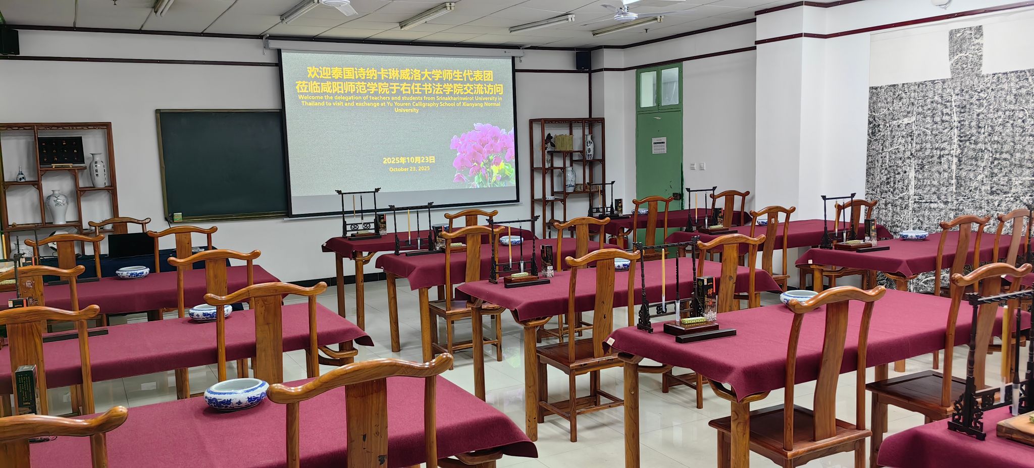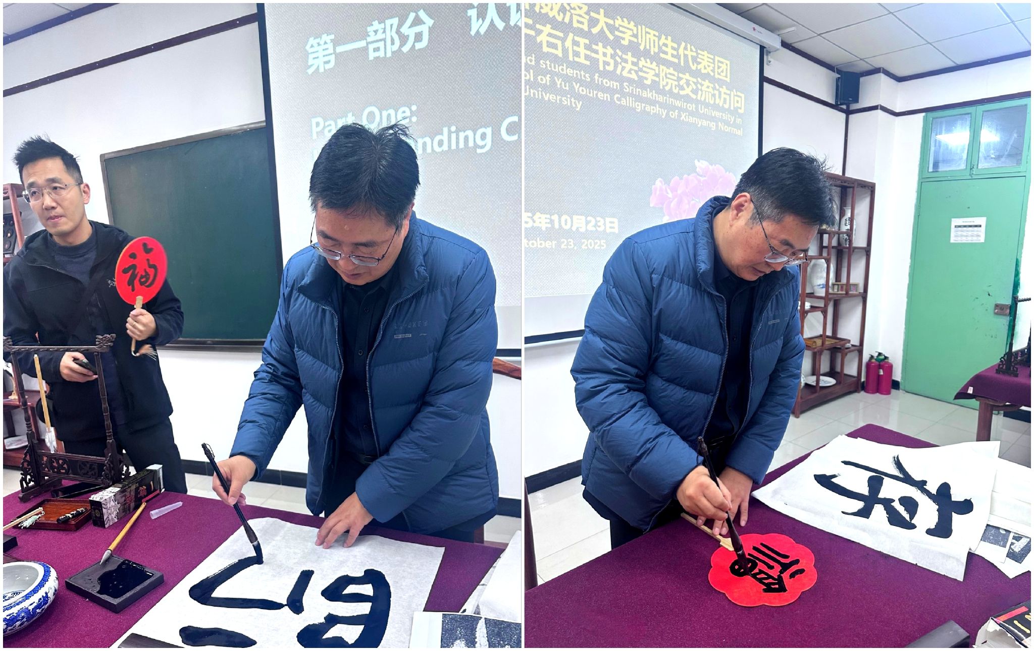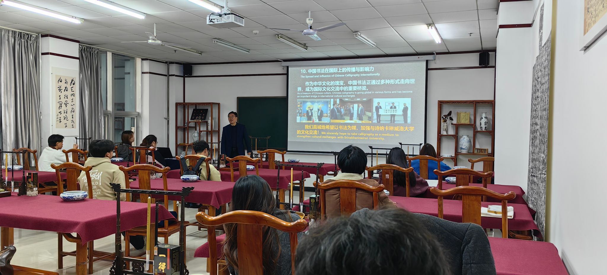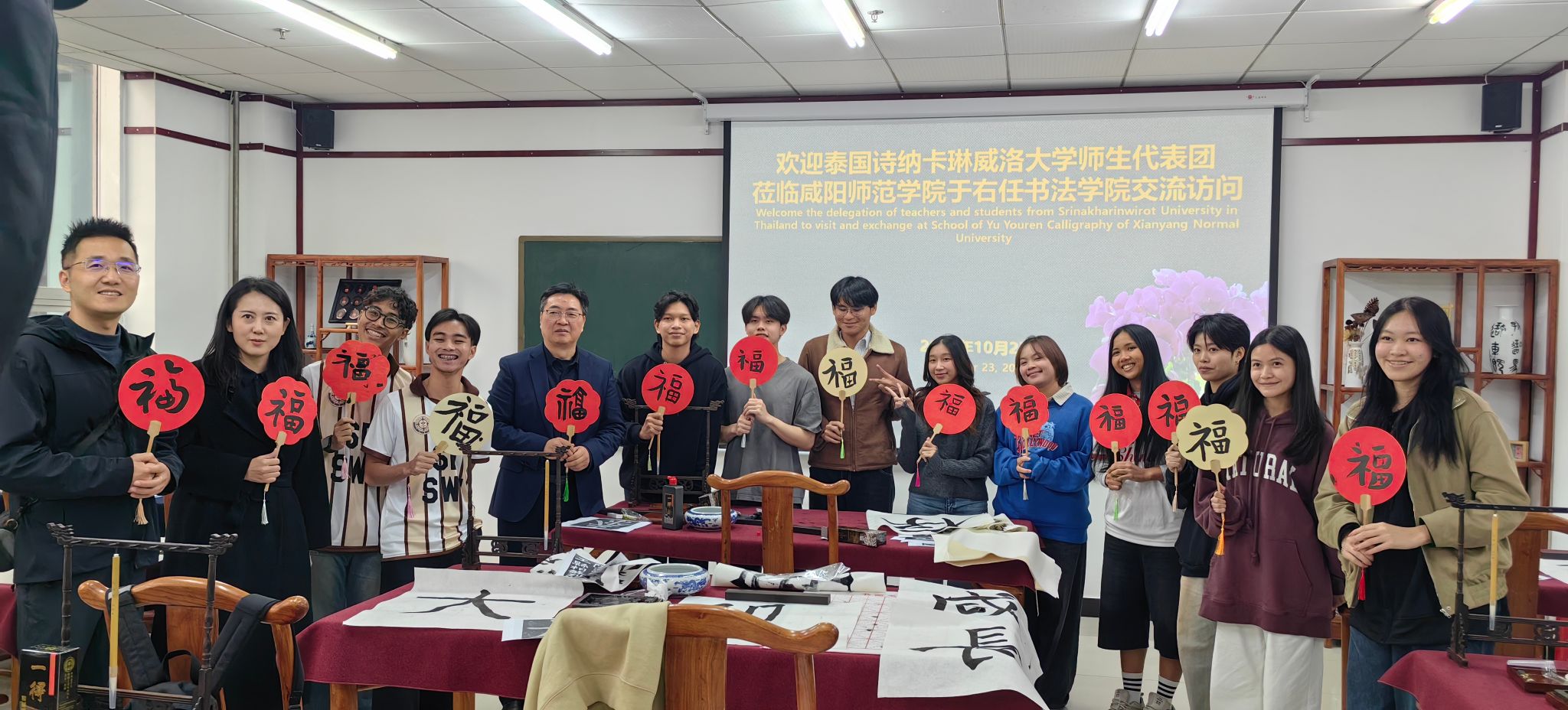 10月23日,泰国诗纳卡琳威洛大学师生代表团来365上市集团官网交流访问,并进行中国书法艺术实践游学项目体验。365上市集团官网经理王智杰教授全程主持了该游学活动的组织与开展。