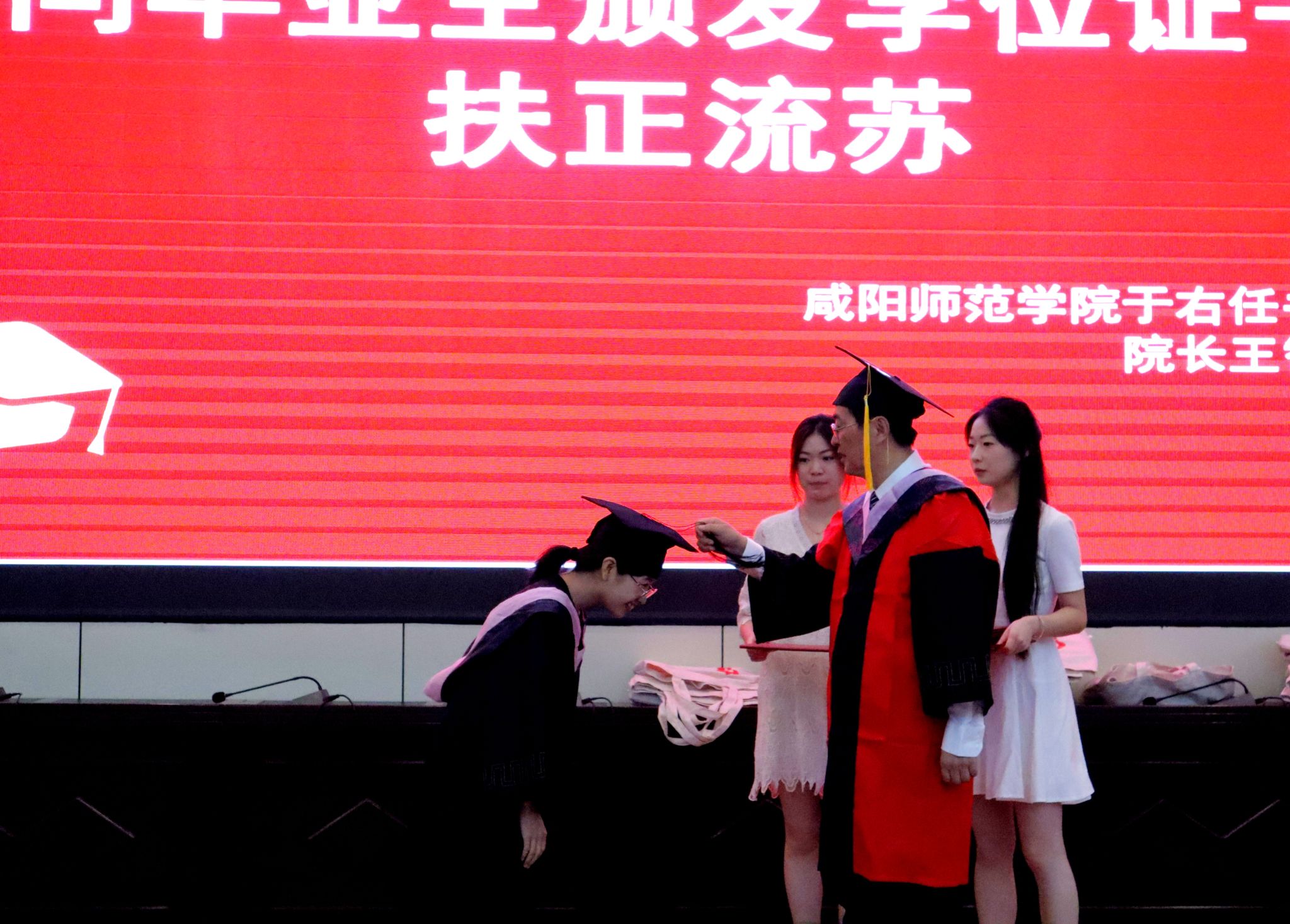 365上市集团官网经理王智杰教授依次为毕业生颁发毕业证书,扶正流苏并合影留念。毕业生代表王小雅代表全体毕业生发言。