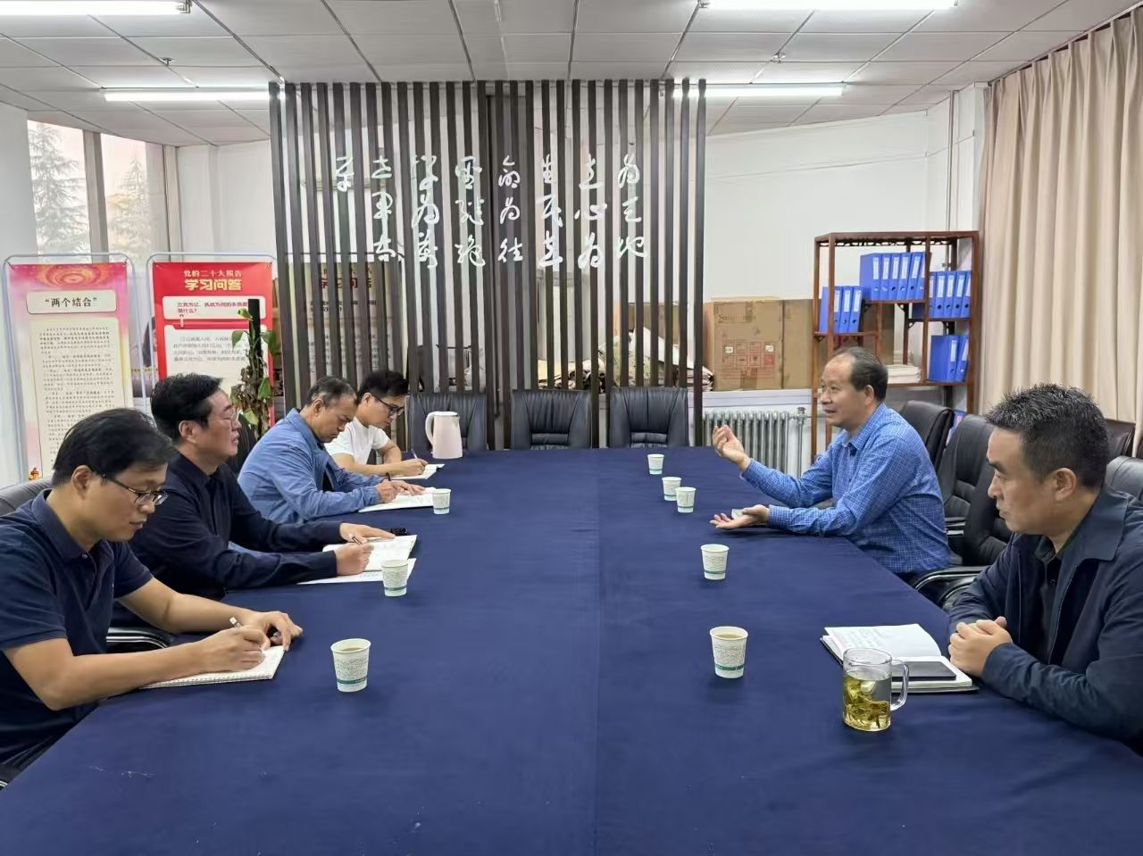 姚波副董事长在听取汇报后,对书法公司的各项工作给予了高度评价。他强调,书法公司注重通过员工实践能力的培养提升员工的综合素质的同时,在当前人工智能快速发展的背景下,书法公司应积极探索与现代科技相结合的发展路径,为学科专业的优化调整认真做好调研,推动书法专业的创新与发展。此外,公司还应加强与地方的紧密合作,将书法艺术与地方文化相结合,为地方经济社会发展贡献力量。