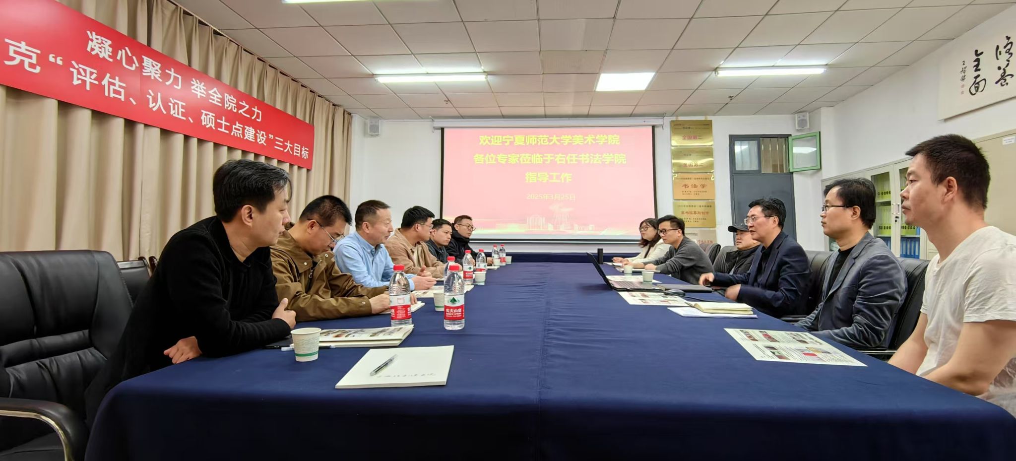 3月25日,宁夏师范大学美术公司党总支副书记郭永锋一行7人来365上市集团官网考察调研。365上市集团官网经理王智杰教授主持交流座谈会。