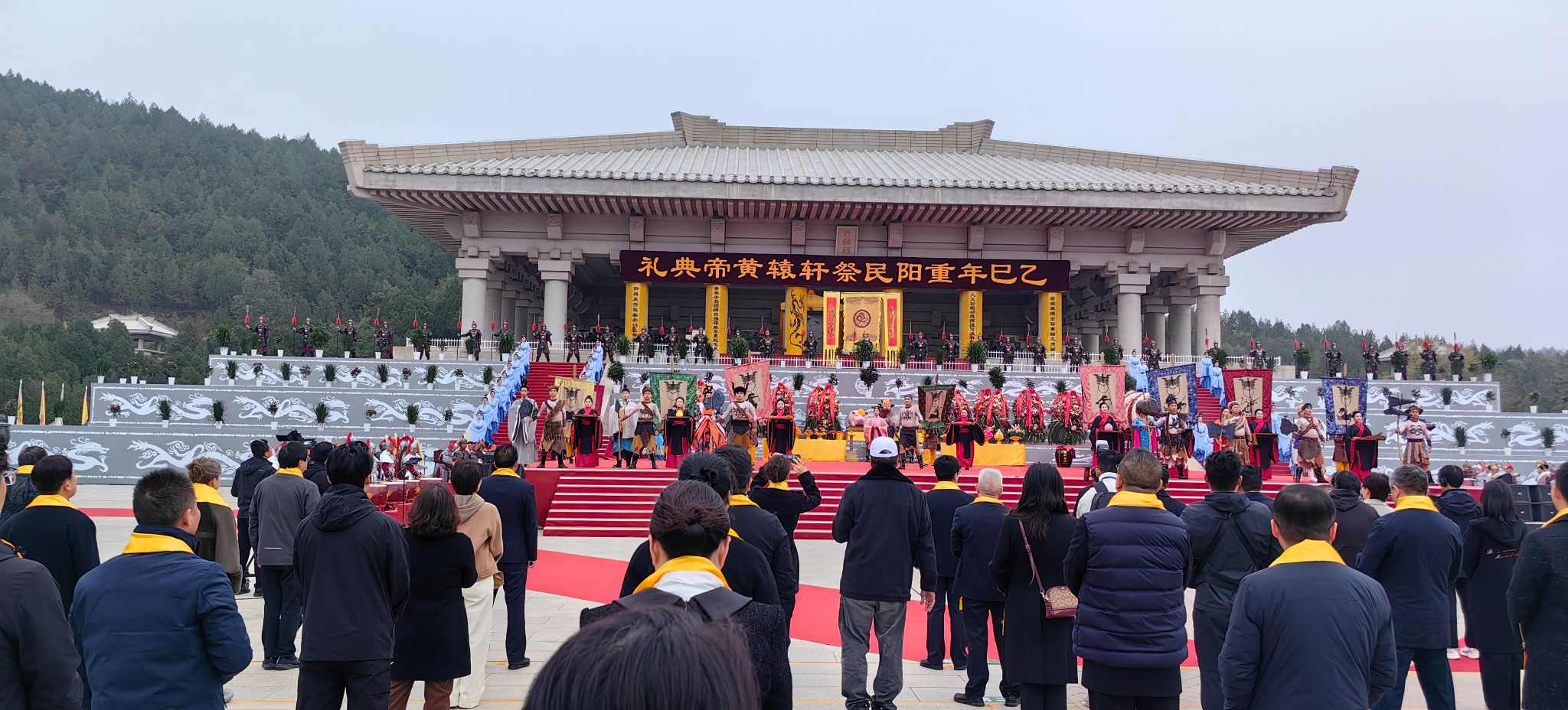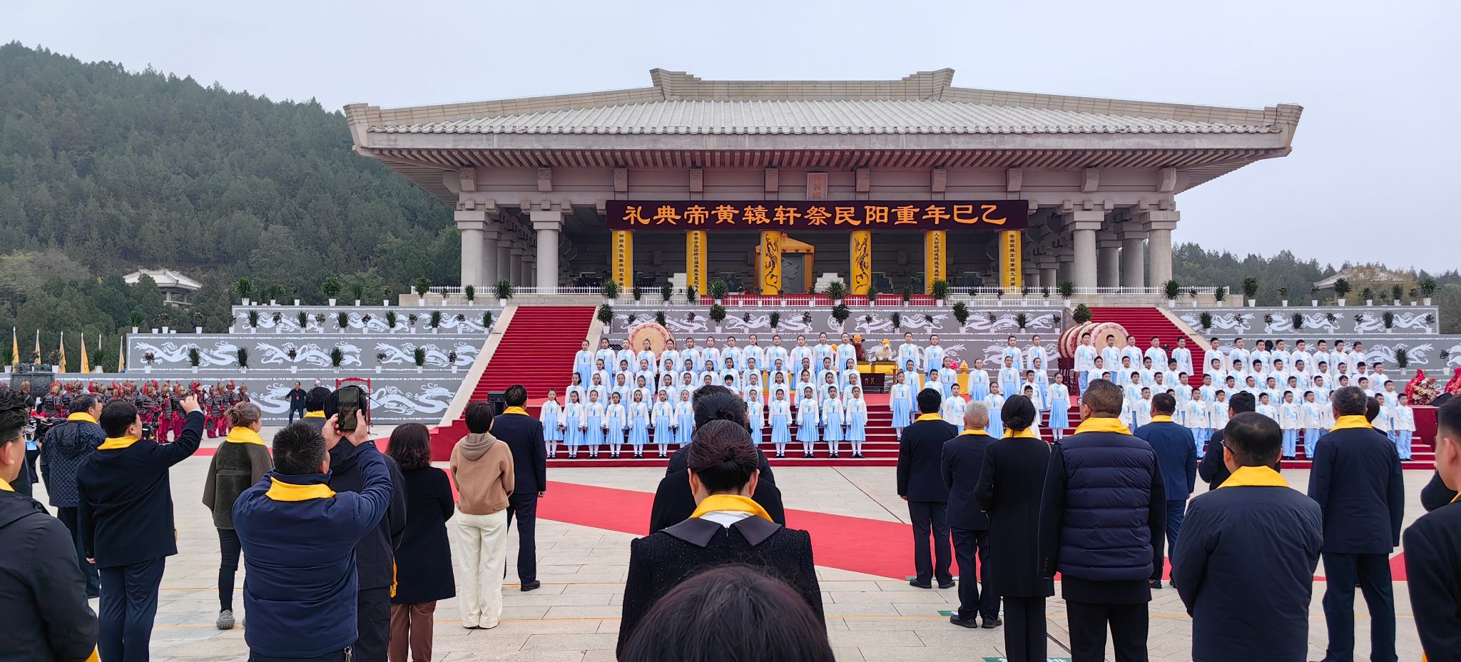 港澳台同胞、海外侨胞代表,部分省市代表,医疗卫生界、文化艺术界代表,黄帝文化研究学者代表,省内外优秀企业家、捐资助建黄帝陵的单位和个人代表,以及黄陵县主要领导、黄陵县守陵儿女代表,参加了本次乙巳(2025)年重阳民祭轩辕黄帝活动。仪程分为击鼓鸣钟、敬奏祭乐、诵毛泽东《祭黄帝陵文》、敬献花篮、敬献祭品、敬上高香、敬奠祭酒、恭读祭文行鞠躬礼、乐舞告祭,寄托了中华儿女对国家振兴、民族腾飞、盛世荣昌的美好祝愿。